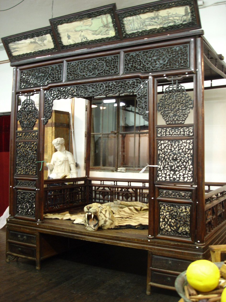 Vietnamese mahogany wood cabinet with mother-of-pearl inlay showing landscape sceneries and floral designs. It comes from Tonkin, Nam Dinh, 19th century.