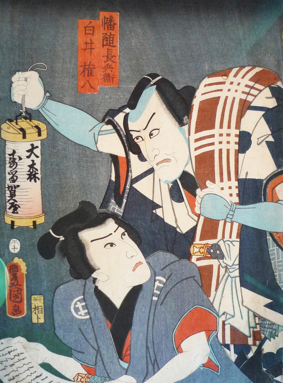 Actors Ichikawa Ebizô V as Banzui Chôbei and Kawarazaki Gonjûrô I as Shirai Gonpachi